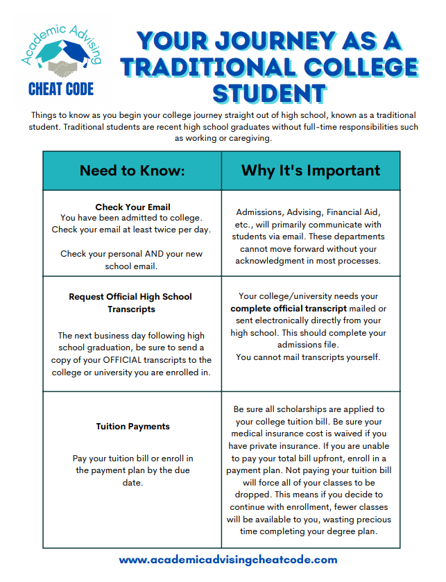 The Academic Advising CHEATCODE shows you exactly which classes to take, the right questions to ask, and the resources to use—creating a clear, confident path to graduation. Save time and money by working with us.